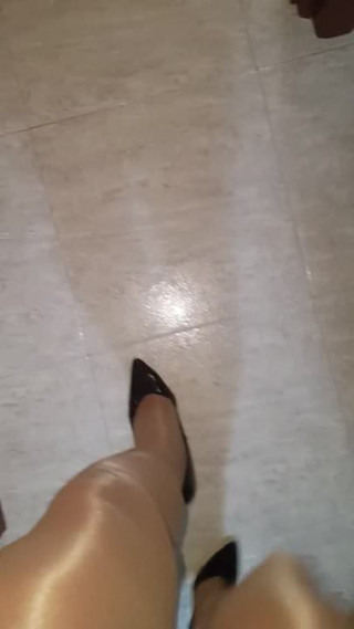 Feet show in heels and nylon